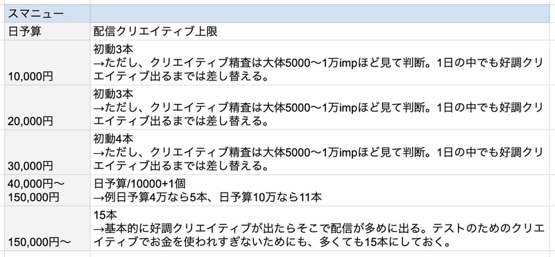 次の2つを運用者で把握していれば、自ずと追加するクリエイティブの数は見えてきます。